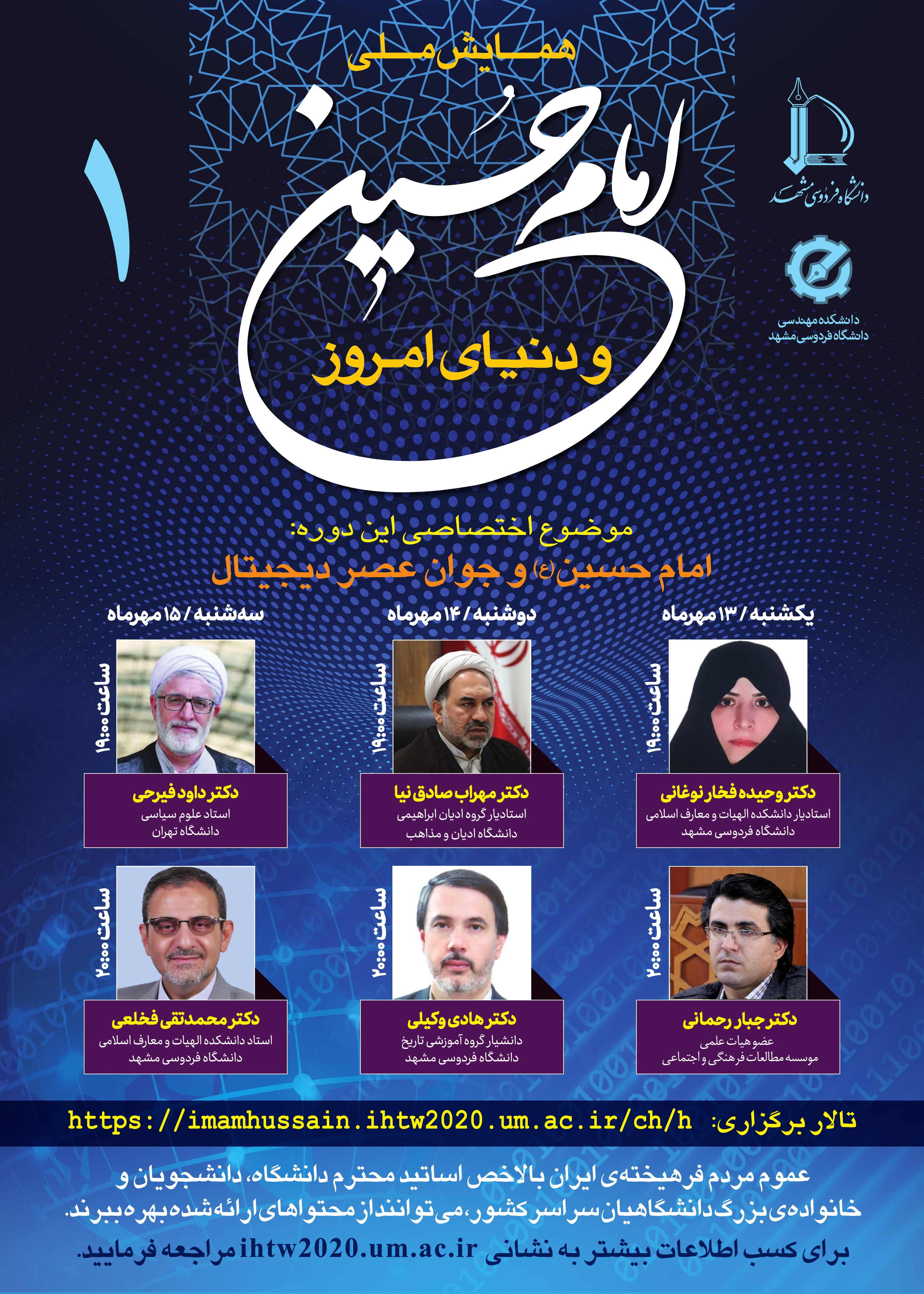 لینک شرکت در جلسات بهصورت مجازی: https://imamhussain.ihtw2020.um.ac.ir/ch/h